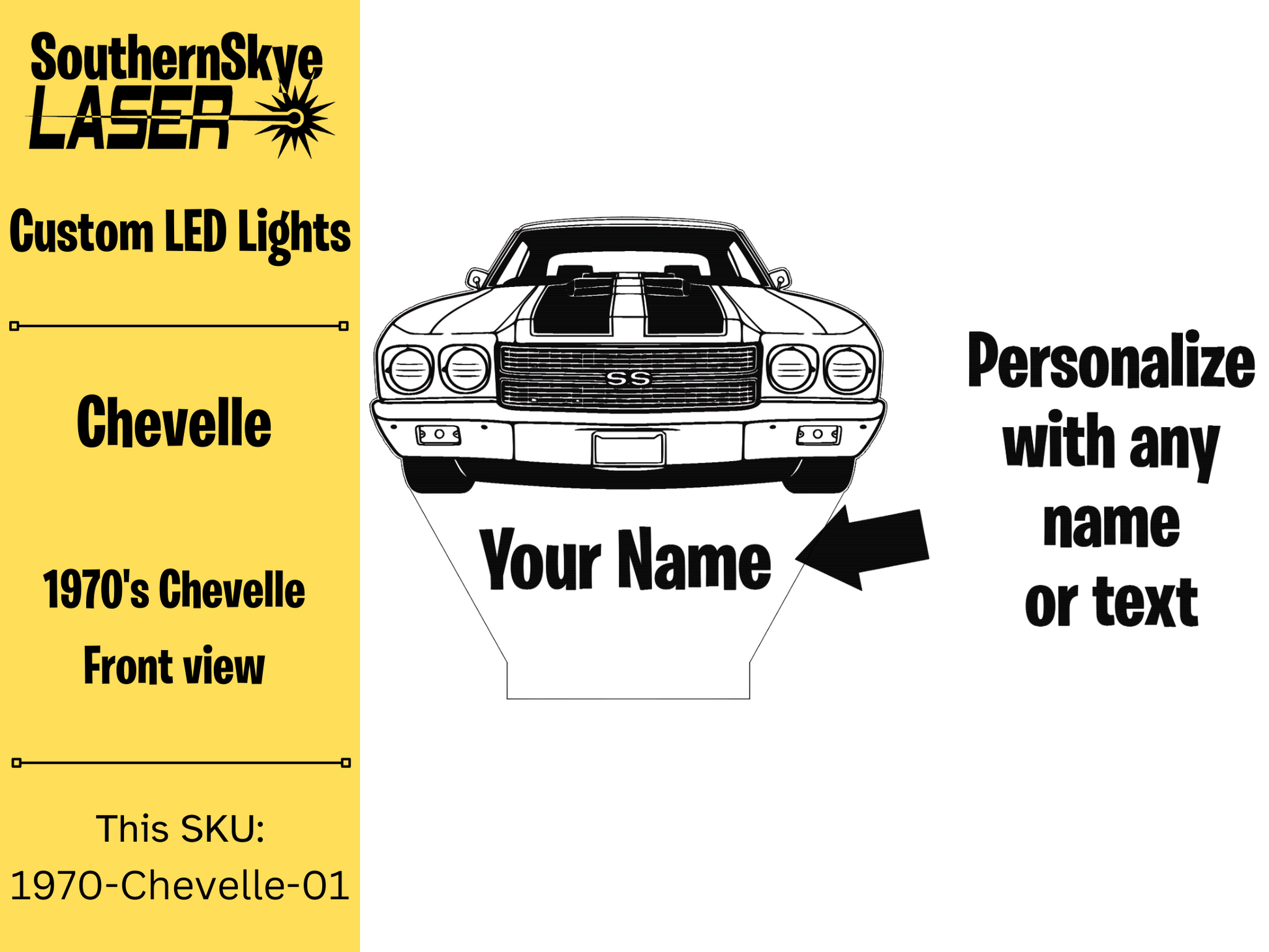 Chevy Chevelle LED Light, Night Light, Desk Light, Personalized Gift, Car Show Trophy.