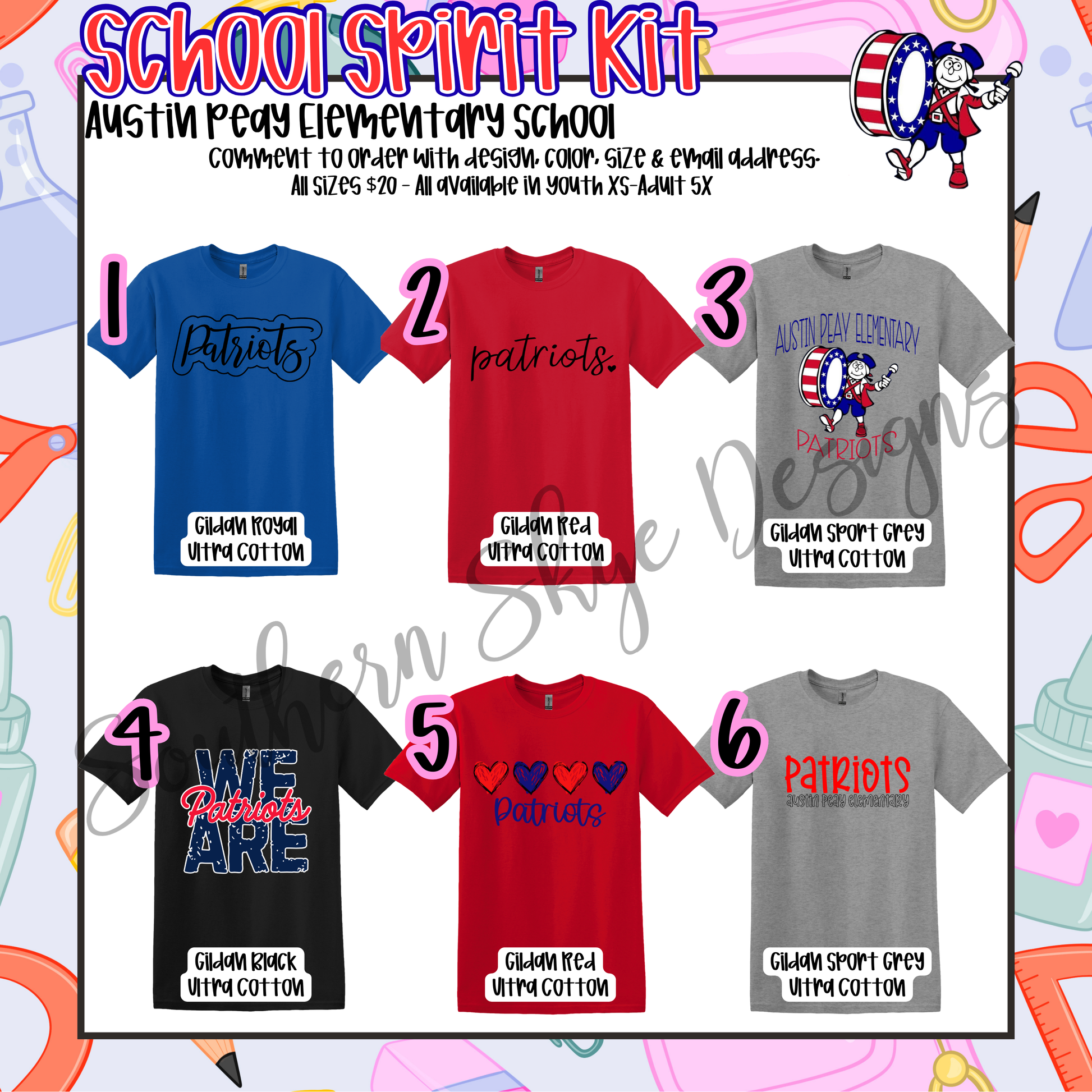 Your SCHOOL SPIRIT KIT is here! It is designed to keep you and your entire family full of Patriot pride.