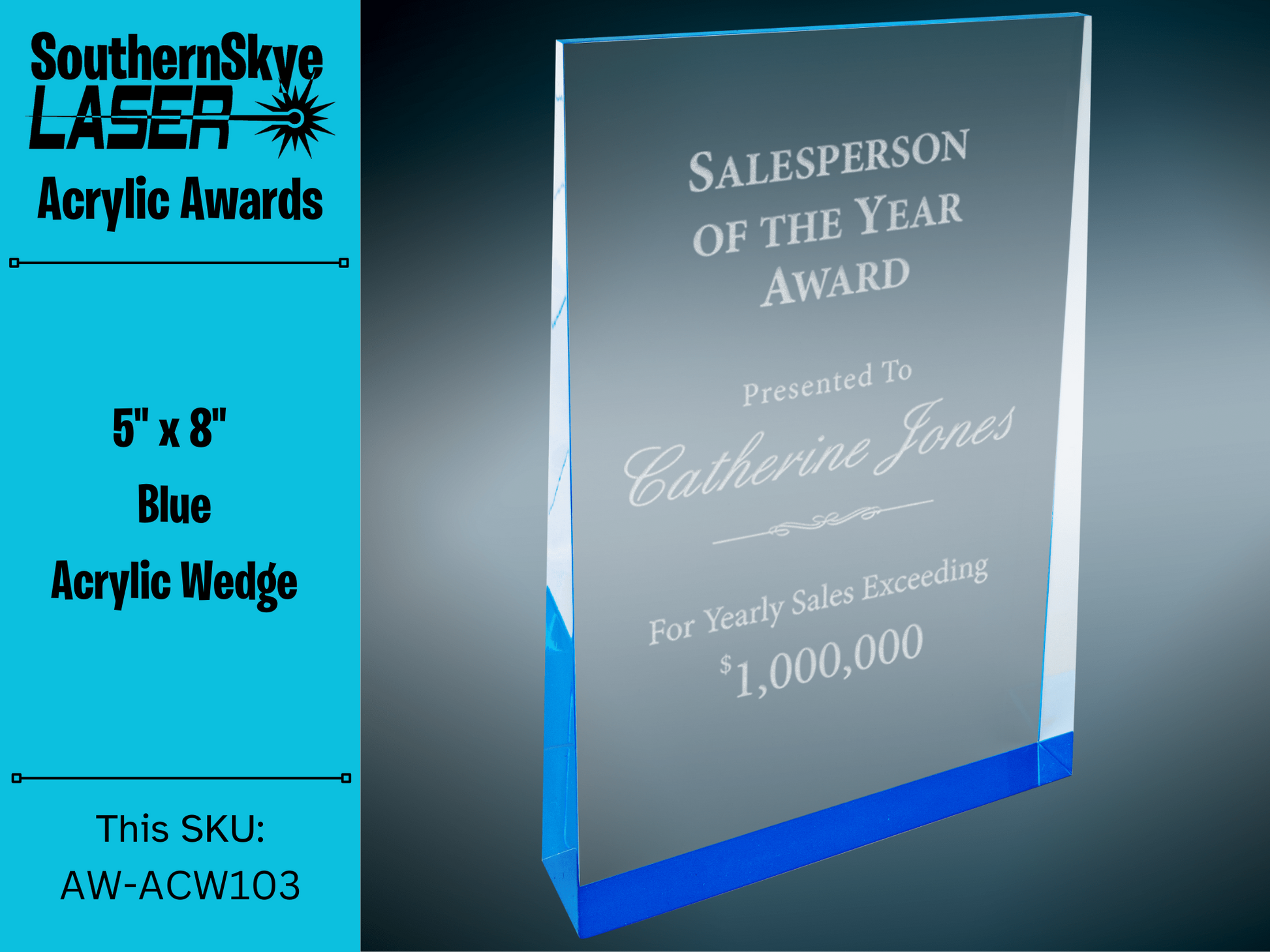 Ideal for corporate events, employee appreciation, or business partnerships, this award symbolizes accomplishment and dedication with style and sophistication. Choose SouthernSkye Laser's Acrylic Recognition Award to showcase your admiration and gratitude in the most memorable way.