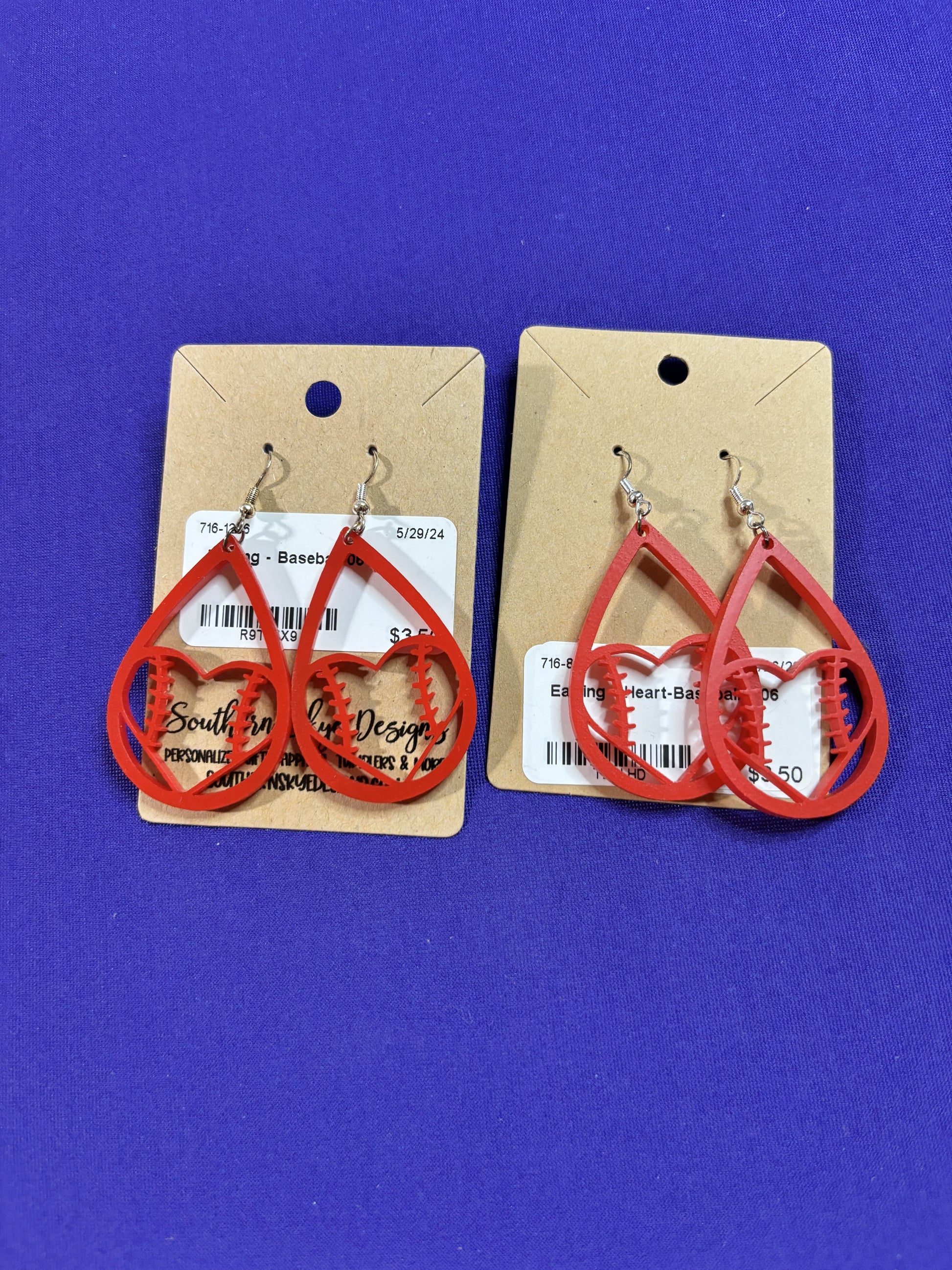 Baseball Heart Earrings #2