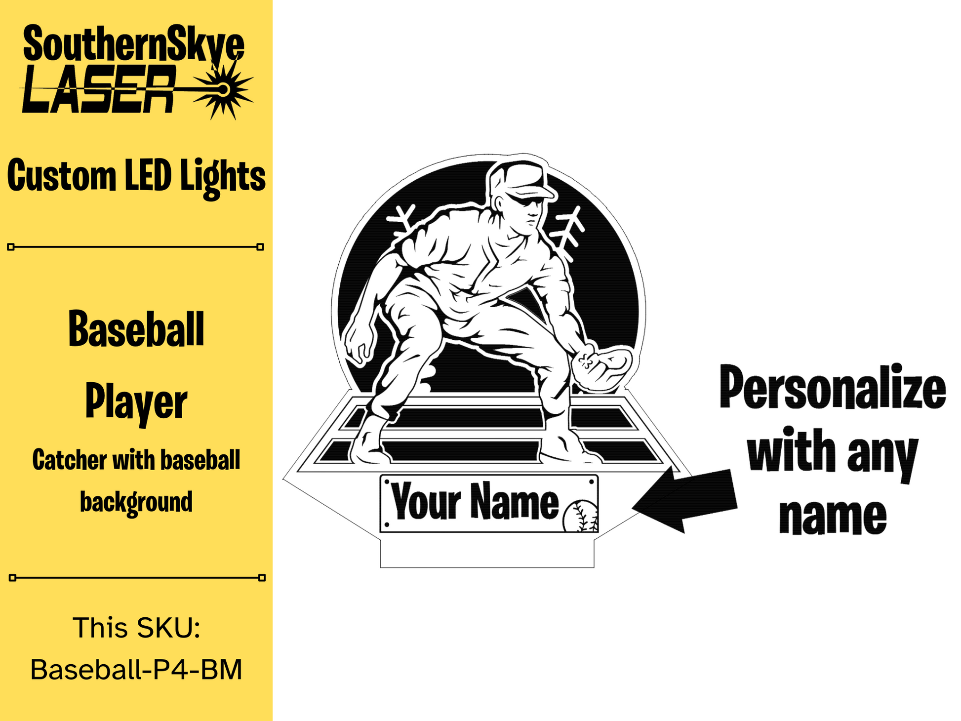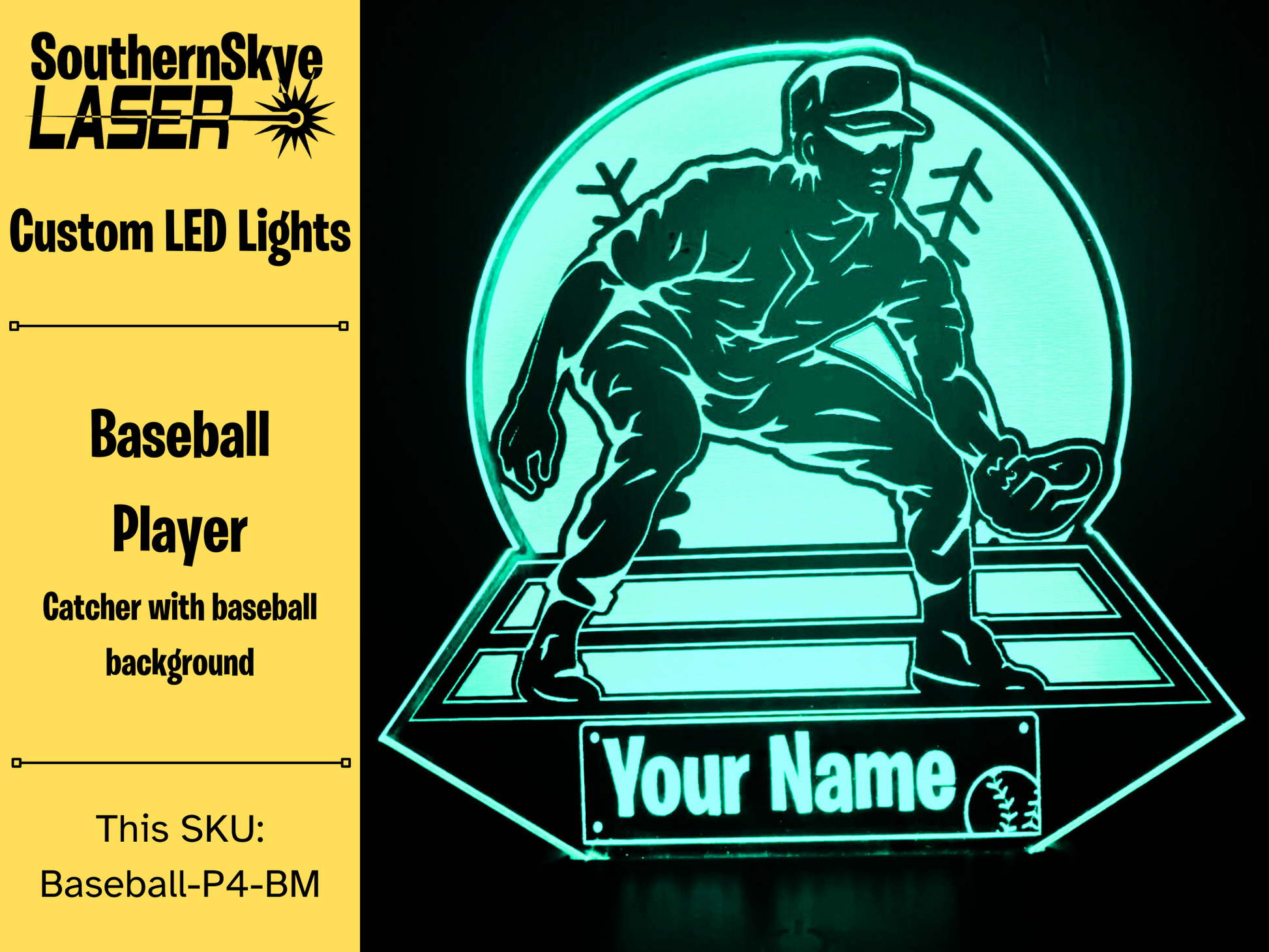 Baseball Player, Catcher with baseball background LED Light, Night Light, Desk Light Personalized Gift, Trophy, Award.