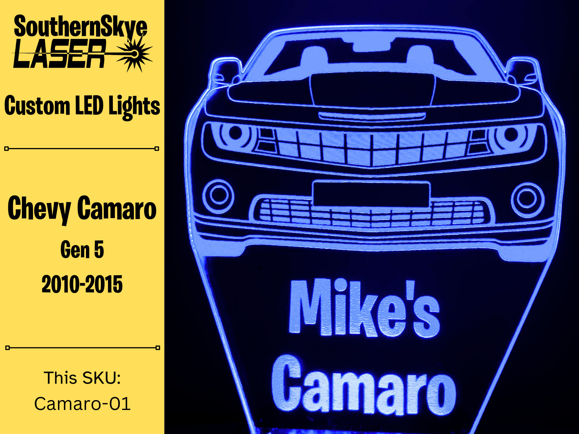 Chevy Camaro LED Light, Night Light, Desk Light, Personalized Gift, Car Show Trophy.