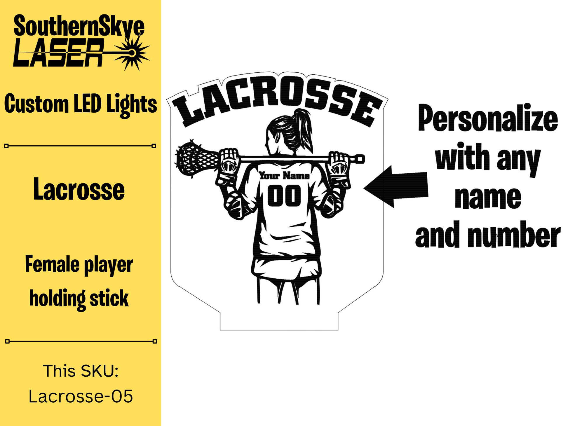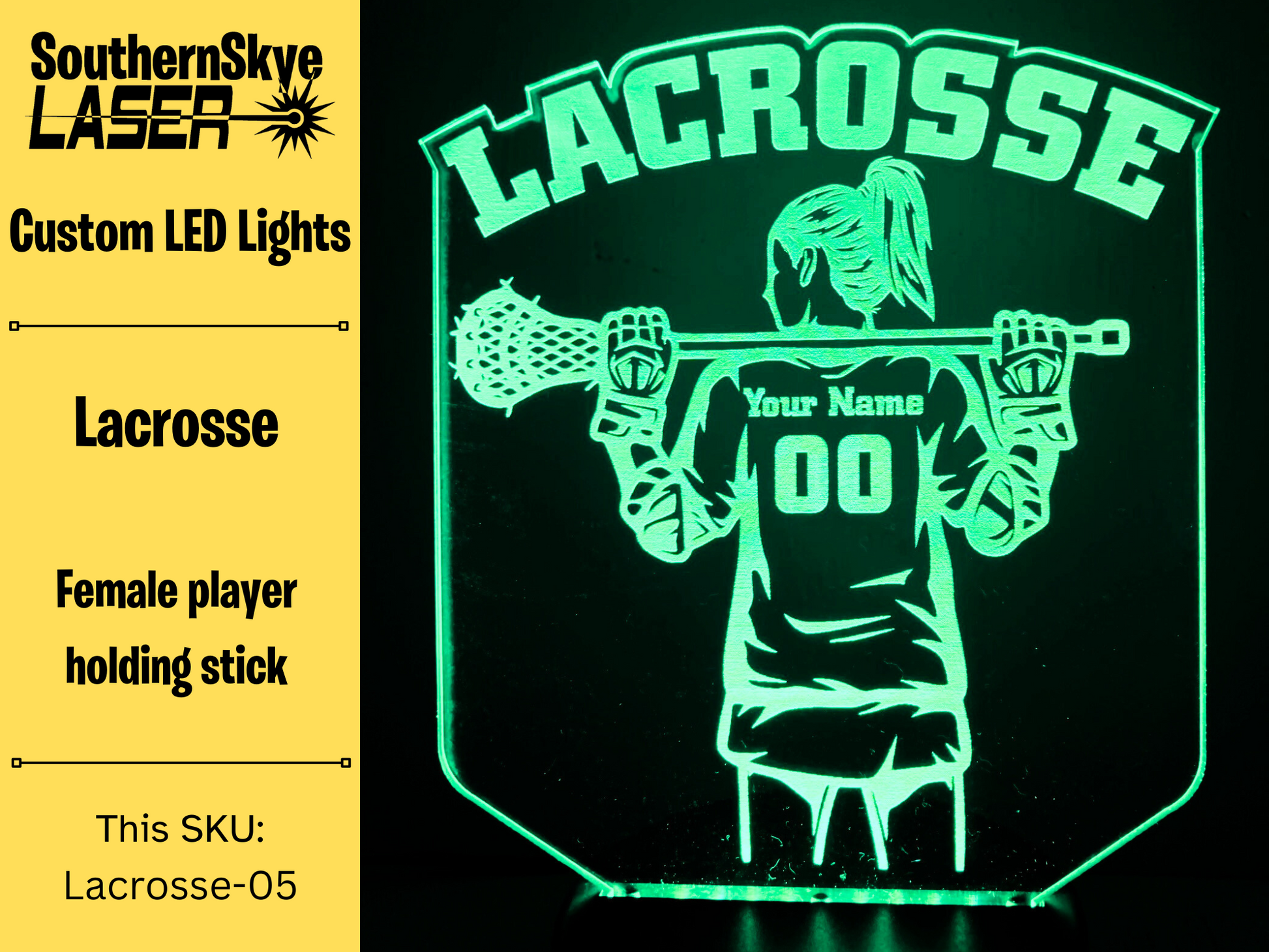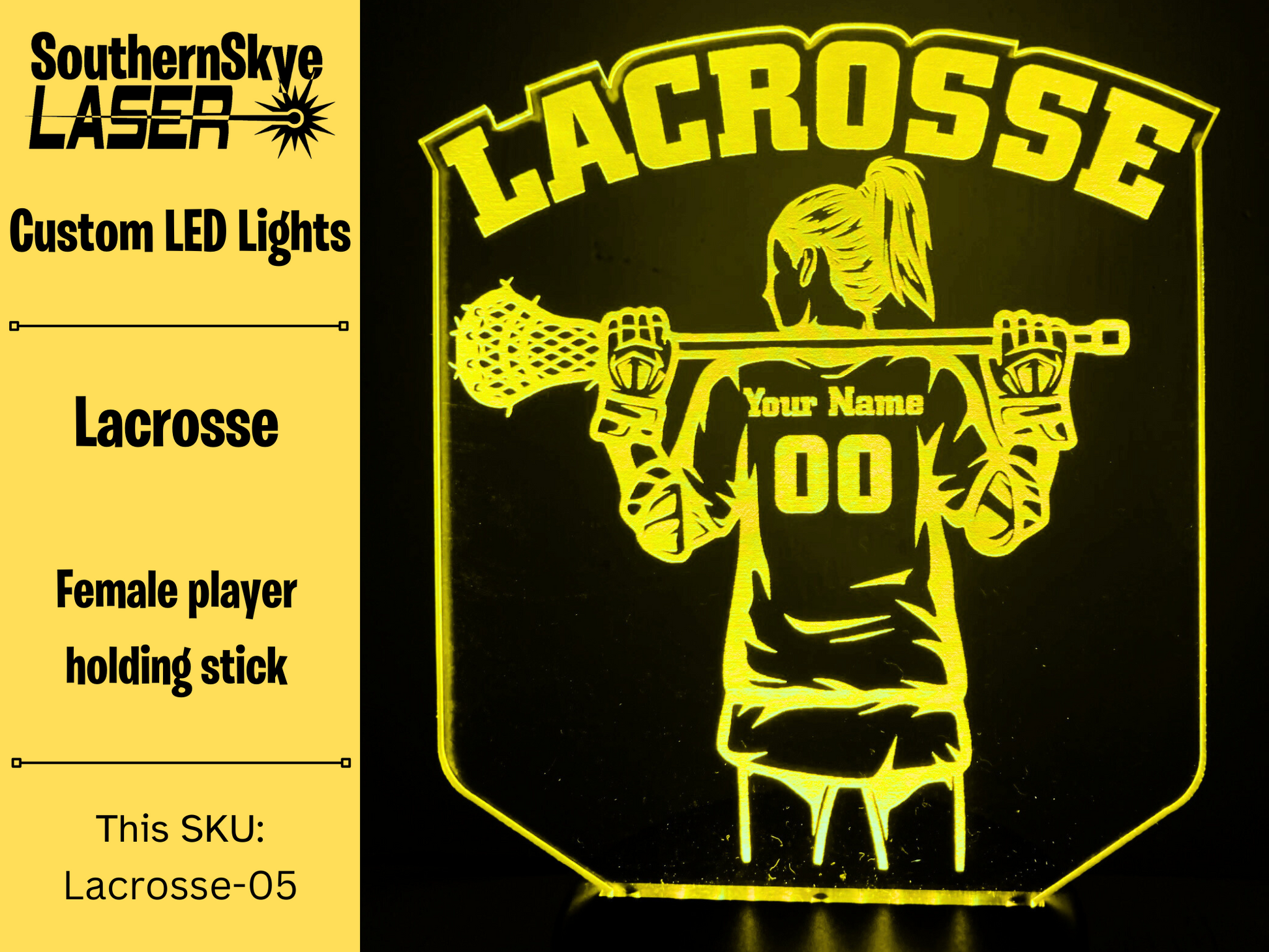 Lacrosse LED Light Featuring Female Player with name and number, Night Light, Desk Light Personalized Gift, Trophy, Award.