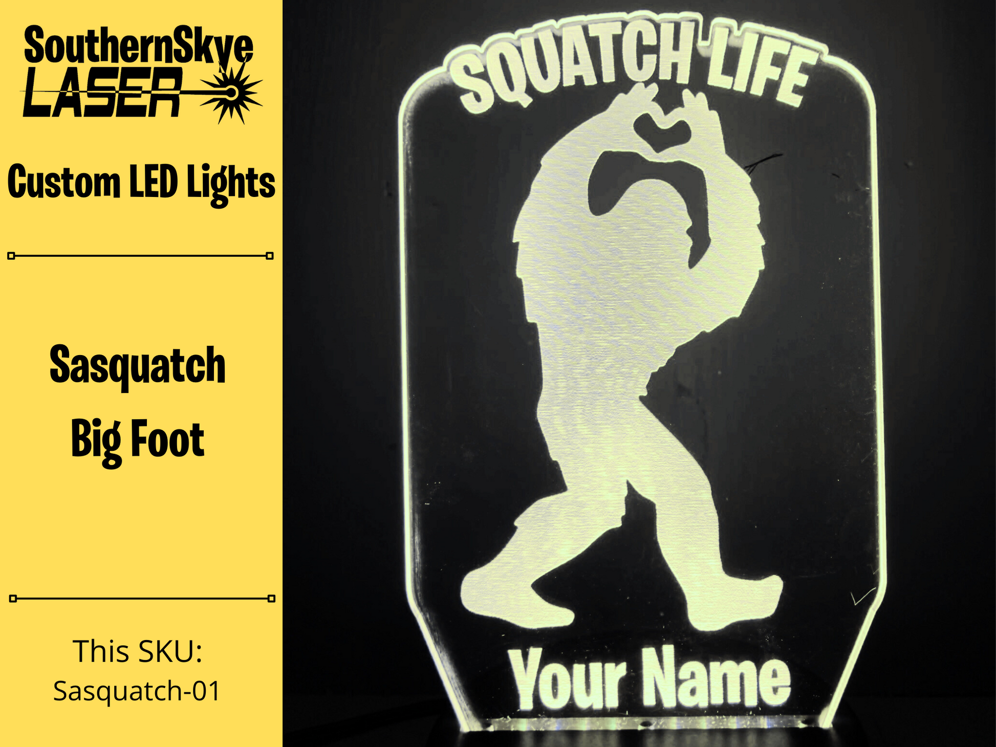 Sasquatch, Squatch Life, Big Foot LED Light, Night Light, Desk Light Personalized Gift.