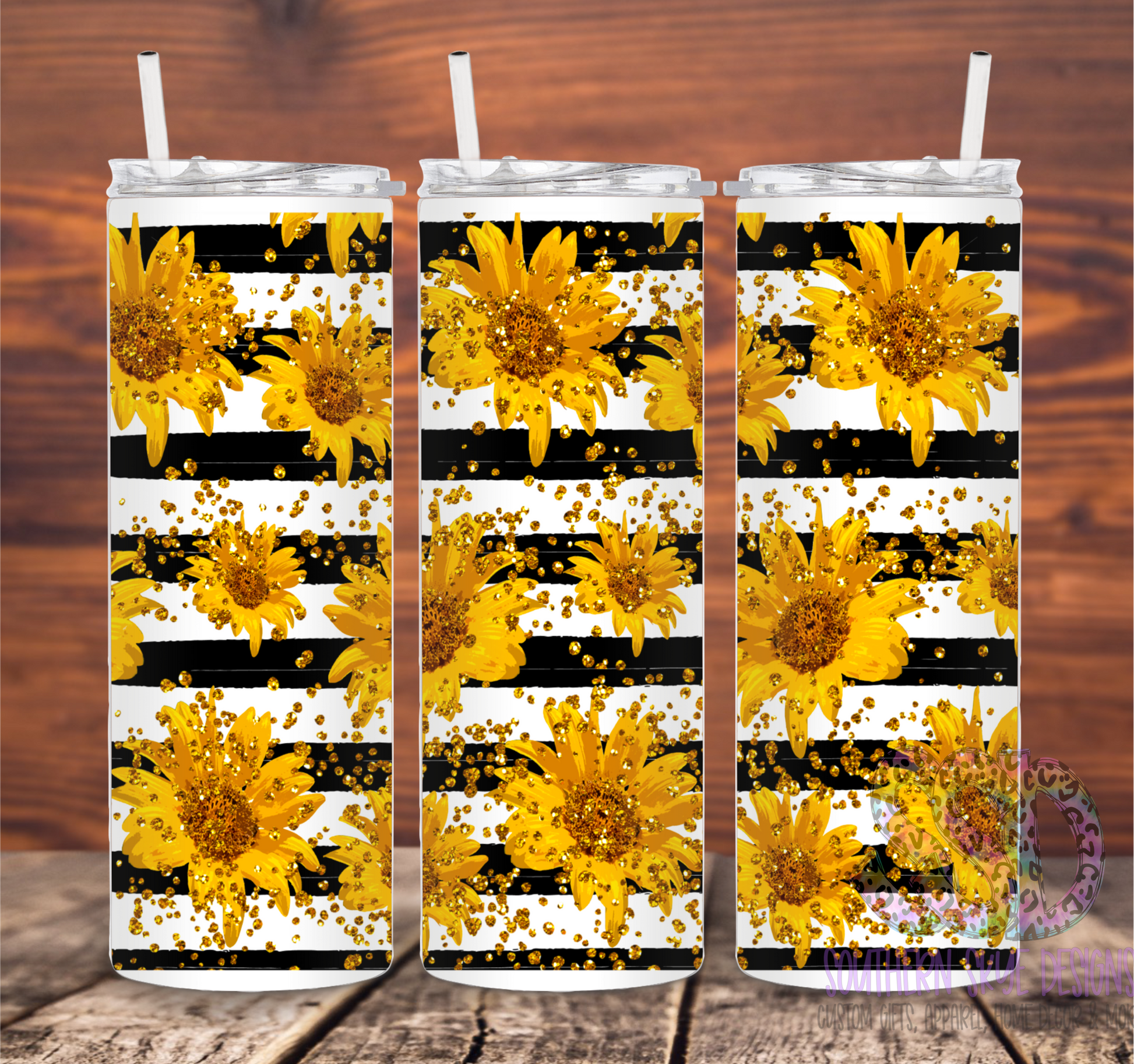 Sunflowers Black Stripes Tumbler